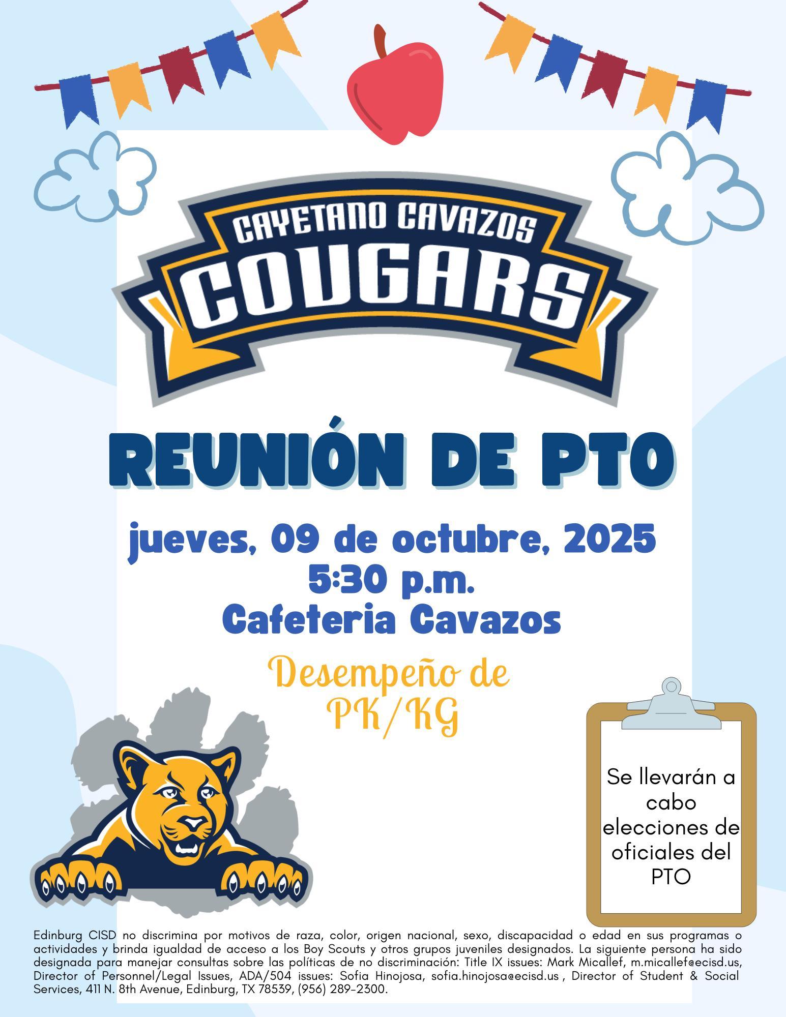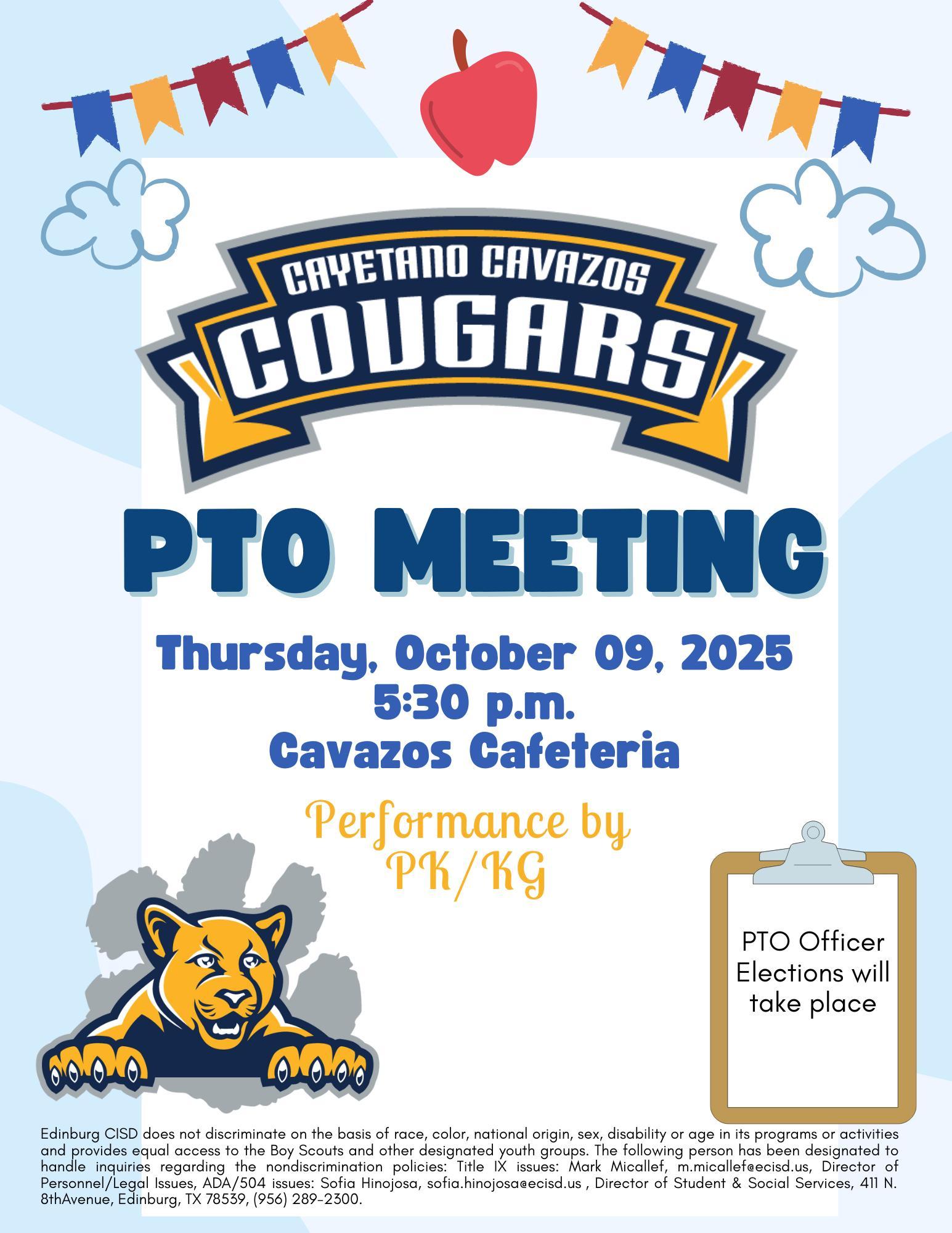 PTO meeting Thursday October 9th at 5:30 PM
